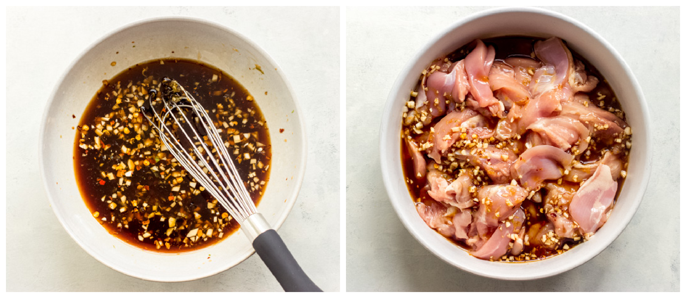 In a separate bowl, toss the chicken with ¼ cup of the sauce. Then leave at room temperate to marinate for 15 minutes.